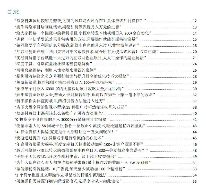 2023年最新450个搞钱玩法合集汇集了多领域的知识,帮助你在生活与职业中找到更多的可能性。通过生动的案例分析与实践经验的分享,你将学习到一系列实用的技巧,提升自我管理与问题解决能力,最终实现目标的跨越式进展。