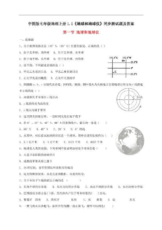 《【七年级上册地理】阶段测试仿真卷》【62.3 MB】