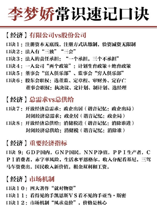 李梦娇常识速记口诀88条打印版资料【8.3 MB】