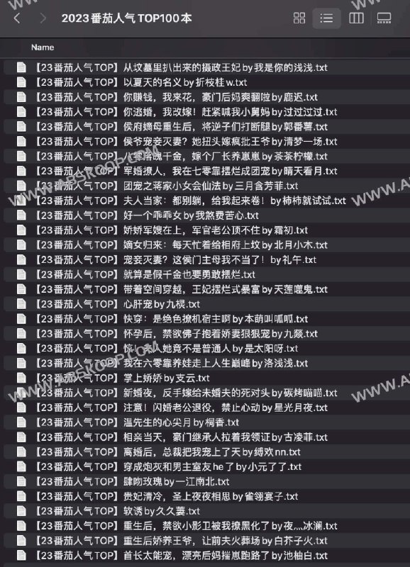 2023番茄人气TXT全本小说TOP100本【4.3 MB】