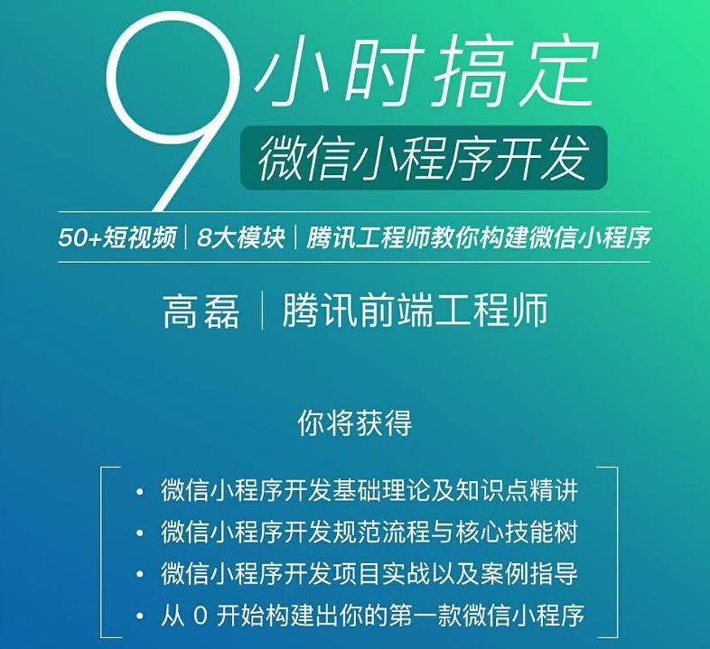 《腾讯工程师 教你9小时搞定微信小程序开发》由腾讯工程师授课,旨在用9小时帮助学习者快速掌握微信小程序开发技能。课程从微信小程序的基础概念、开发环境搭建讲起,逐步深入到页面设计、功能实现等核心内容,通过实际案例和项目实战,让学习者在短时间内学会开发微信小程序,了解小程序开发的流程和技巧