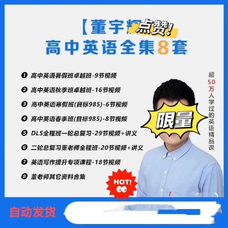 《董宇辉英语 高中英语暑假班卓越班》是董宇辉为高中学生打造的英语学习课程,专门针对暑假学习阶段设计。课程内容紧密围绕高中英语教学大纲,涵盖词汇、语法、听力、阅读、写作等各个方面。董宇辉以其独特的教学风格,将知识讲解与趣味故事、文化背景相结合,让英语学习不再枯燥。在词汇教学中,他会通过讲解单词的词源、用法和例句,帮助学生轻松记忆;语法部分,会用生动形象的方式解析复杂的语法规则,让学生更好理解和运用。课程还注重培养学生的英语综合能力,通过大量的练习和实战模拟,提升学生在考试中的应对能力,同时激发学生对英语学习的兴趣,为高中英语学习打下坚实基础