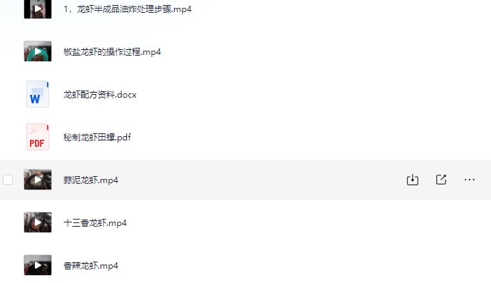 《各种口味龙虾制作配方技术教程》【1.14 GB】